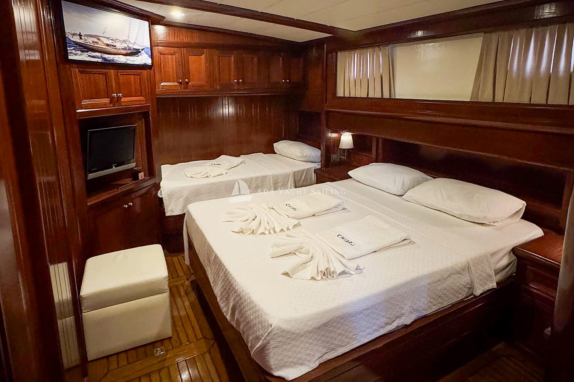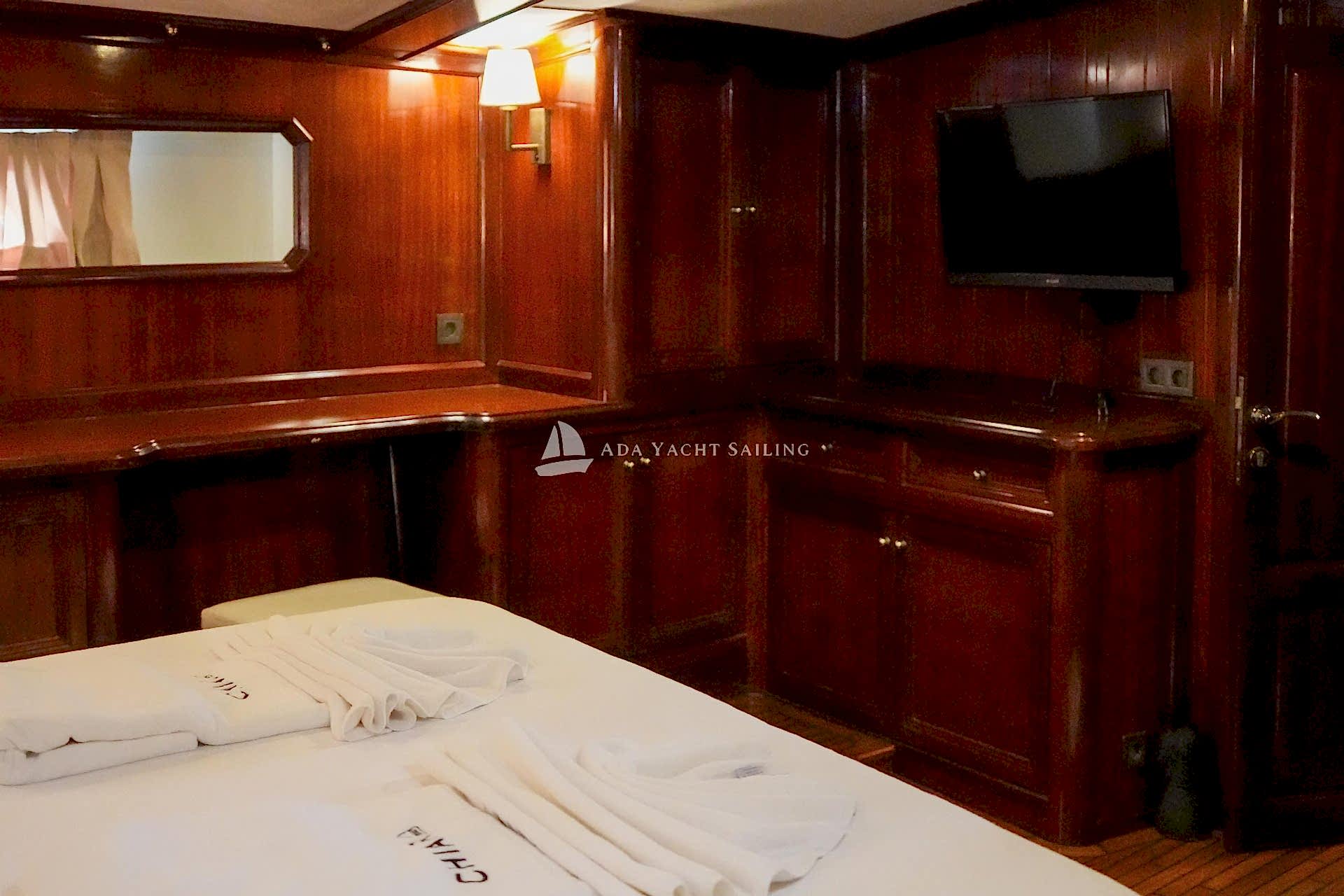 Chiara gulet ; 2009 yılında tamamlanıp suya inen 2025 yılında tamamen yenilenen 4 kabinli standart plus guletimiz Göcek limandan hareketle göcek koylarında siz mavi tur severlere hizmet vermektedir. Muhteşem koyları ve büyüleyici bakir doğası ile dünyanın en gözde tatil beldelerinden biri olan Fethiye göcek bölgesi son yıllarda popüler bir bölge haline gelmiştir. Chiara gulet toplamda 4 adet kabine sahiptir. Kabin mimarisi 1 Master 1 Double 2 Triple kabinden oluşmaktadır. Toplam 8 kişi konaklama kapasitesine sahip Chiara gulet de Temmuz ve Ağustos gibi yüksek sezon dönemi haftalık kiralanmaktadır. Cumartesi 14:00 giriş , bir sonraki Cumartesi 09:30 çıkış yapılır. Tam boy 24 metre ve eni 5.5 metredir. Teknemizde 1 adet kaptan,1 adet aşçı ve 1 gemici olmak üzere 3 personel bulunmaktadır. Guletimizde düşük sezon aylarında ise minimum 3 gece ve üzeri kiralama yapabiliyorsunuz. Chiara gulet teknemizde wi-fi, kano, su oyuncakları, jeneratör gibi donanımlar mevcut olup mavi yolculuk tekne tatiliniz için her detay düşünülmüştür. Tekne tatili öncesinde tekne aşçımız size ulaşarak alışveriş listenizi birlikte planlamaktadır. Dilerseniz yiyecek malzemelerinizi kendiniz temin edebilirsiniz ya da tekne ekibimiz sizin adınıza temin edebilir. Sevdikleriniz ve aileniz ile birlikte muhteşem anılar biriktireceğiniz bir tekne tatili için bize ulaşmanız yeterlidir. Doğru analiz, doğru tekne ve doğru hizmet misyon anlayışı ile çıktığımız yolda sizlere hizmet vermekten mutluluk duyarız.